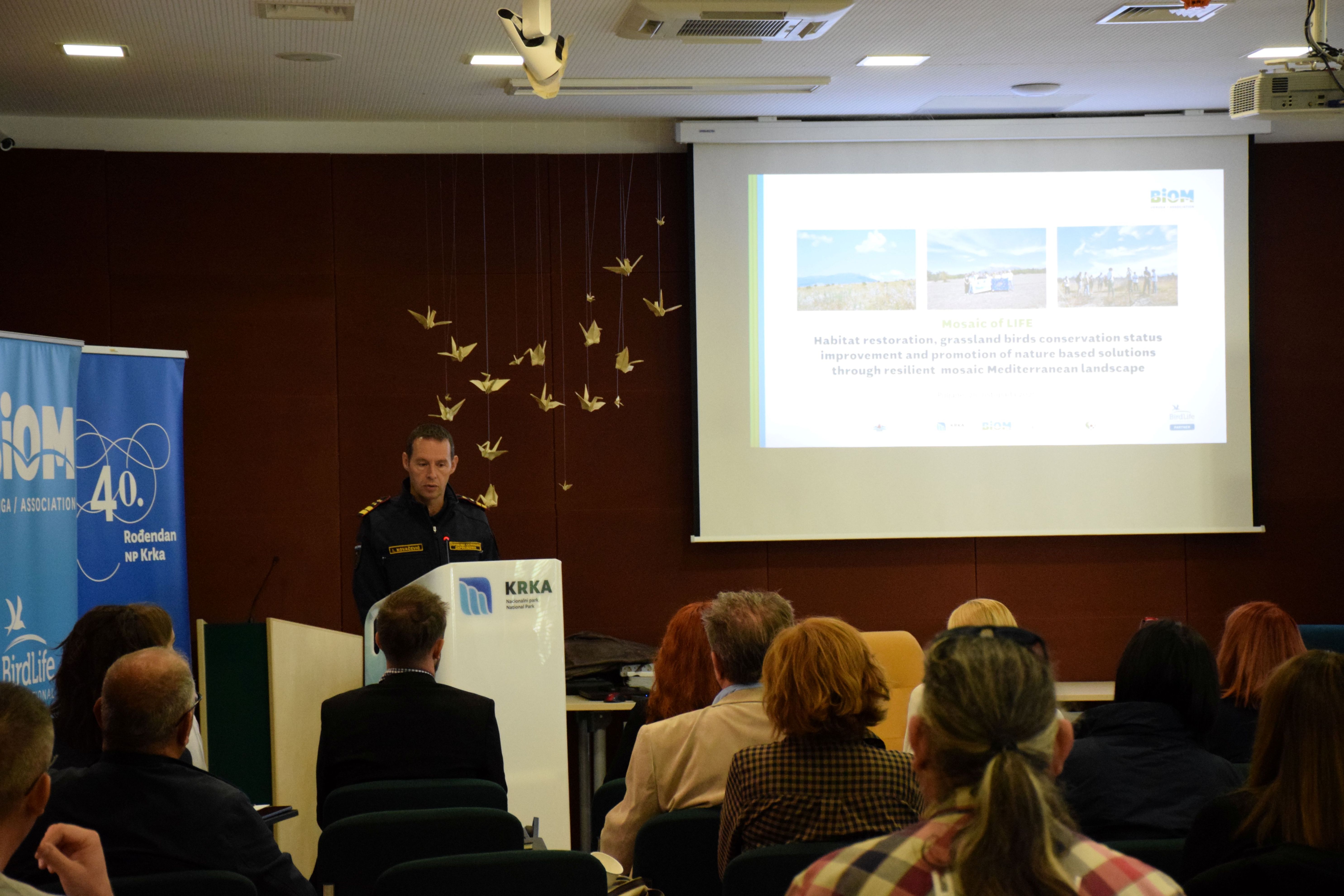Predstavljanje je otvorio voditelj projekta Tomislav Hudina iz Udruge Biom te u cijelosti izložio "Mosaic of LIFE" s naglaskom na radne pakete, planirane aktivnosti i ciljeve. Posebno je istaknuo suradnju s lokalnom zajednicom i podršku partnera kao ključan preduvjet za uspjeh projekta.