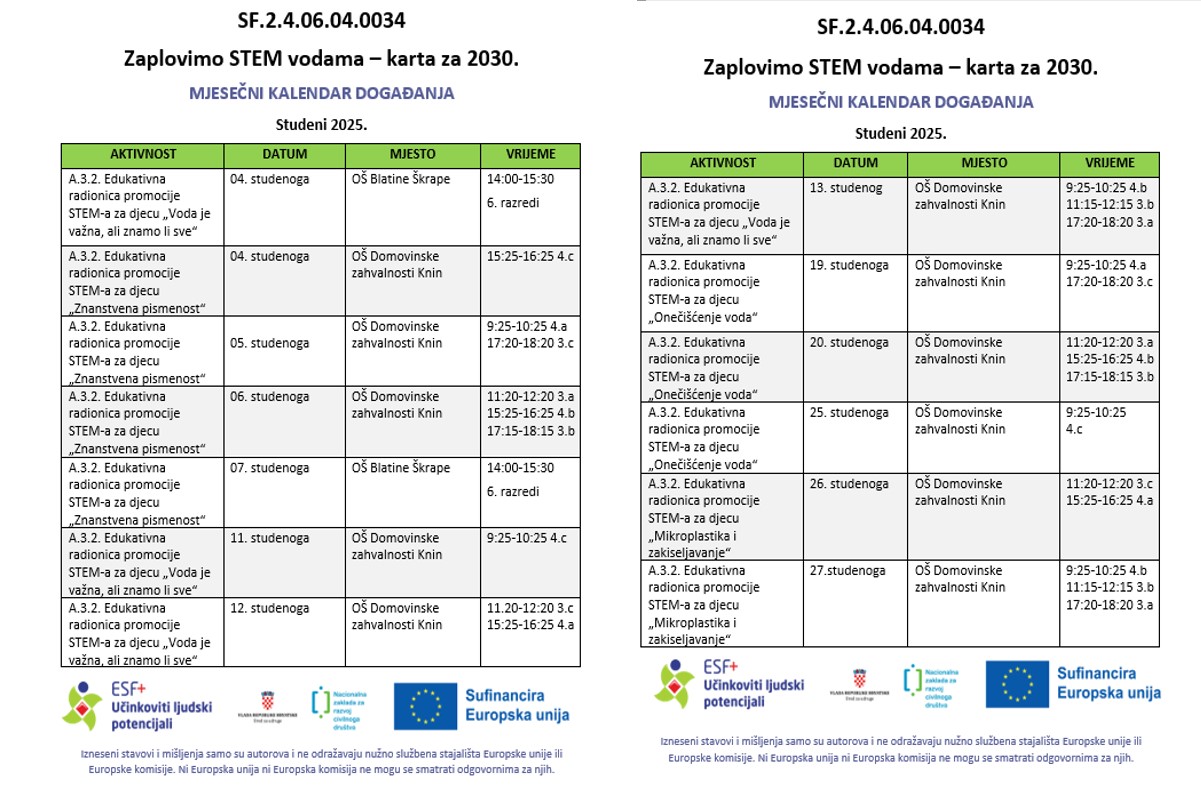 STEM aktivnosti i Kalendar događanja studeni 2025.